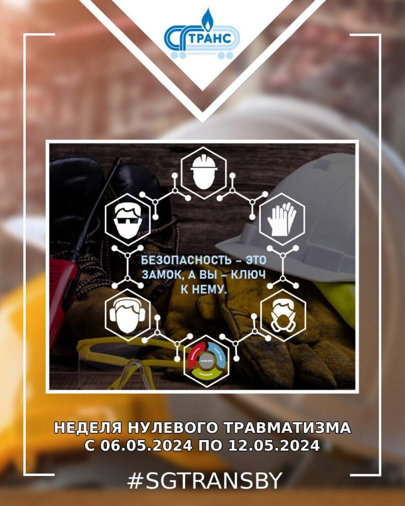 В соответствии с поручением Министерства энергетики Республики Беларусь от 29.04.2024 номер 73/135 в период с 06 по 12 мая 2024 года на РУП СГ-ТРАНС будет проходить Неделя нулевого травматизма. Во время проведения Недели нулевого травматизма запланировано проведение различных мероприятий. Охрана труда для работника - верный способ сохранить самое главное богатство - жизнь, здоровье и трудоспособность. Наша общая цель - создать для работника безопасные условия труда.
