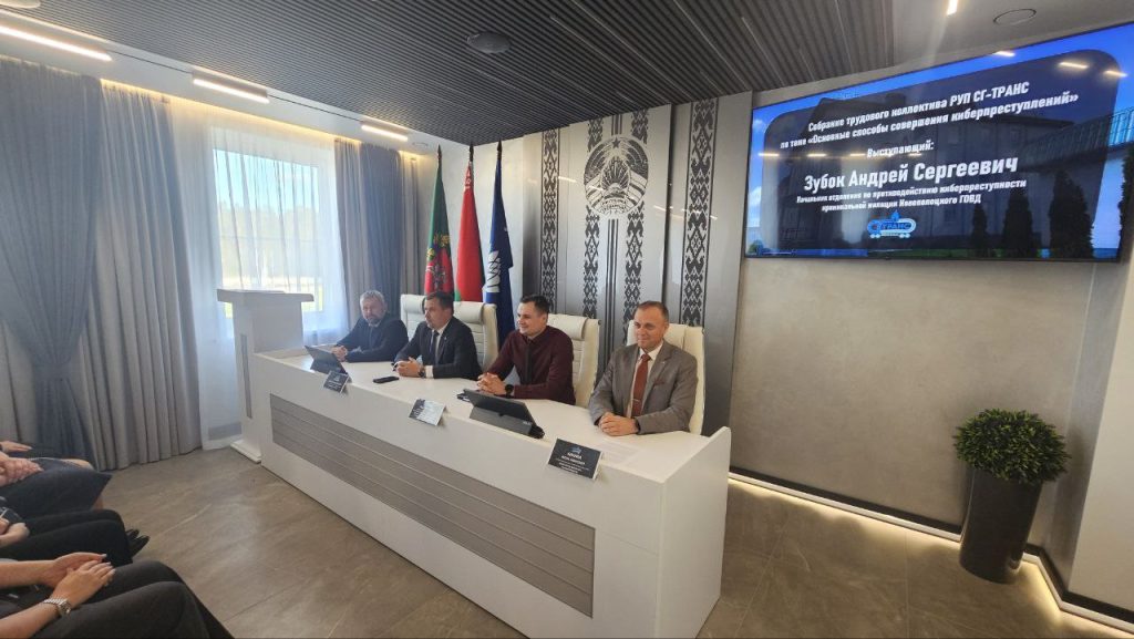 📣25 сентября 2025 года в РУП СГ-ТРАНС состоялось собрание трудового коллектива по теме «Основные способы совершения киберпреступлений» при участии начальника отделения по противодействию киберпреступности криминальной милиции Новополоцкого ГОВД, майора милиции Зубока Андрея Сергеевича.