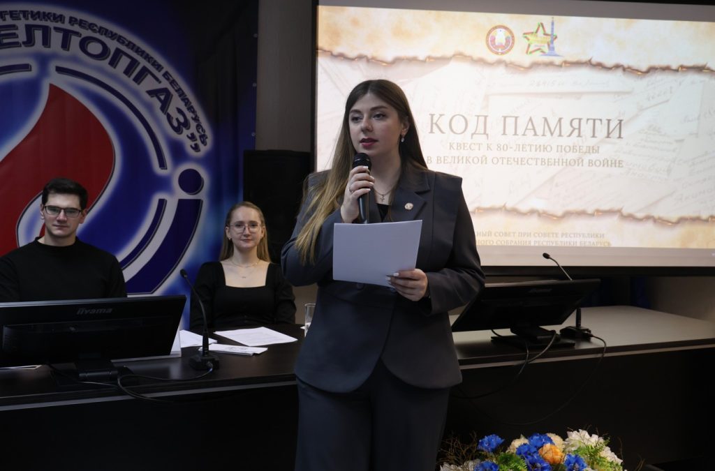 ✅В рамках Дня молодого специалиста в УП «МИНСКОБЛГАЗ» Елена Кругликова, инженер по охране окружающей среды РУП СГ-ТРАНС, являясь председателем комиссии по экономике, инновационному развитию и предпринимательству Молодежного совета при Совете Республики Национального собрания Республики Беларусь совместно с членами Молодежного совета УП «МИНСКОБЛГАЗ» провела для молодых специалистов предприятия военно-патриотический квест «Код памяти».