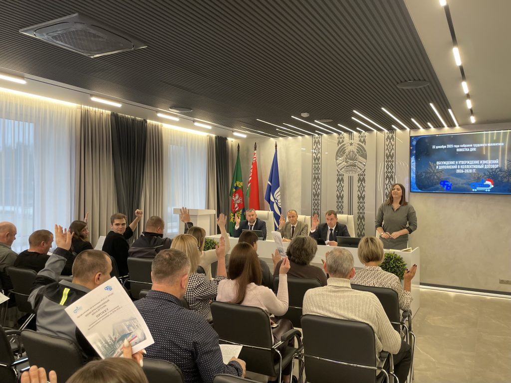 22 декабря 2025 года в РУП СГ-ТРАНС состоялось ключевое собрание трудового коллектива, посвященное обсуждению и утверждению основных изменений и дополнений в Коллективный договор на предстоящий период с 2026 по 2028 год. Собрание стало значимым событием для предприятия, поскольку Коллективный договор является основополагающим документом, регулирующим социально-трудовые отношения между работниками и администрацией.