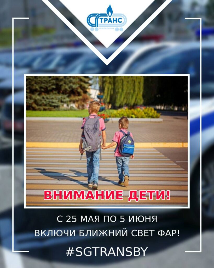 🚸 С 25 мая по 5 июня в Беларуси проходит профилактическое комплексное мероприятие "Внимание - дети!» В этот период движение автомобилей должно осуществляться в светлое время суток с включенным ближним светом фар. 🚘 Водителям рекомендуют соблюдать скоростной режим, уменьшать скорость вблизи пешеходных переходов, остановок и школ, там, где есть большая вероятность появления на проезжей части детей. Необходимо также соблюдать правила перевозки маленьких пассажиров. Безопасность детей в первую очередь зависит от внимания и контроля взрослых!