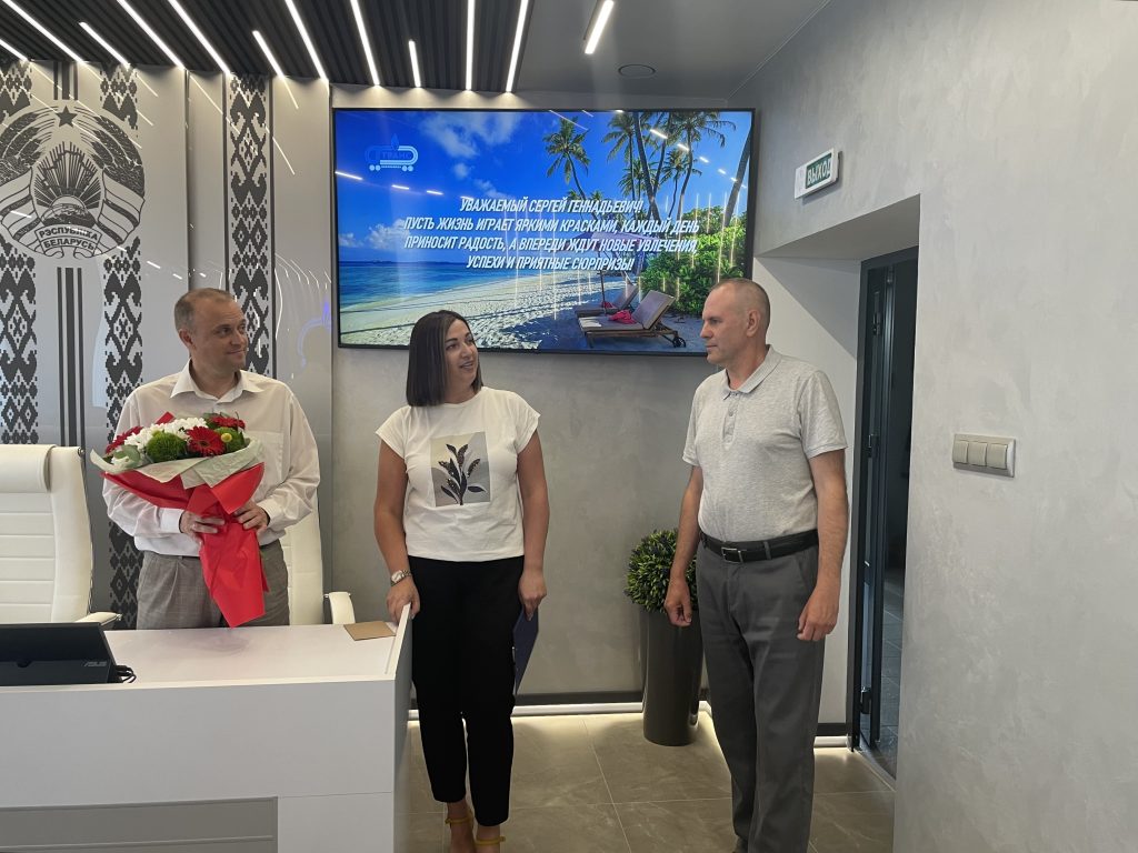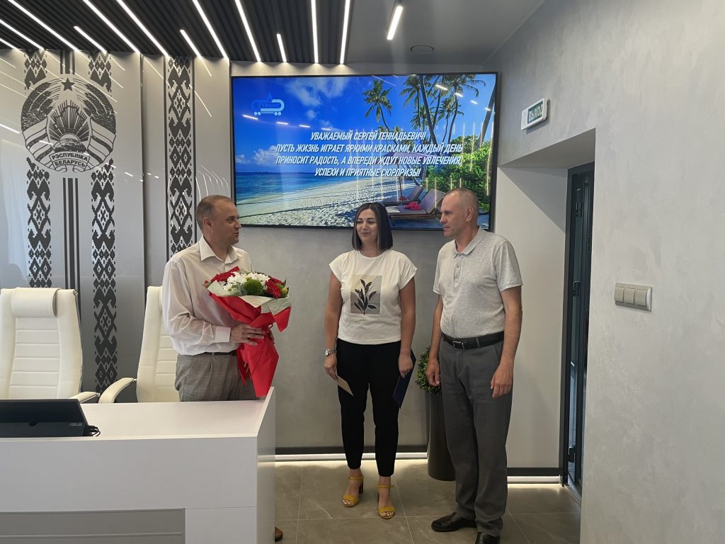 С поздравительным словом выступили председатель профсоюза РУП СГ-ТРАНС Ирина Стриголович и заместитель директора-главный инженер Игорь Ананка, подчеркнув, что благодаря бдительности и внимательности Сергея Геннадьевича, безопасность на территории РУП СГ-ТРАНС всегда находится на высоком уровне.