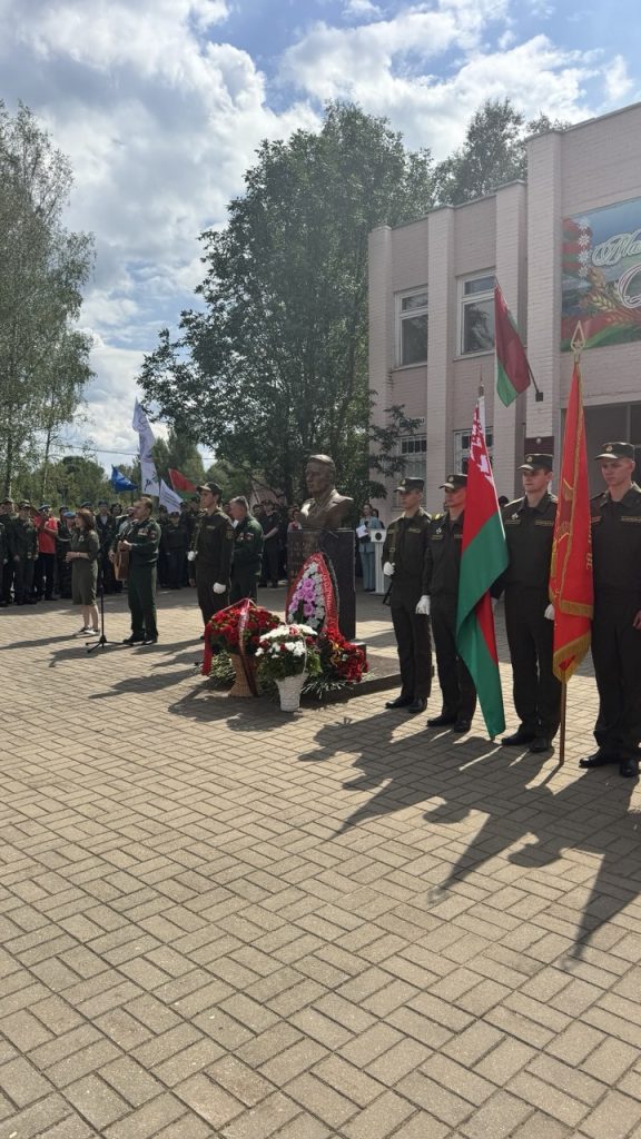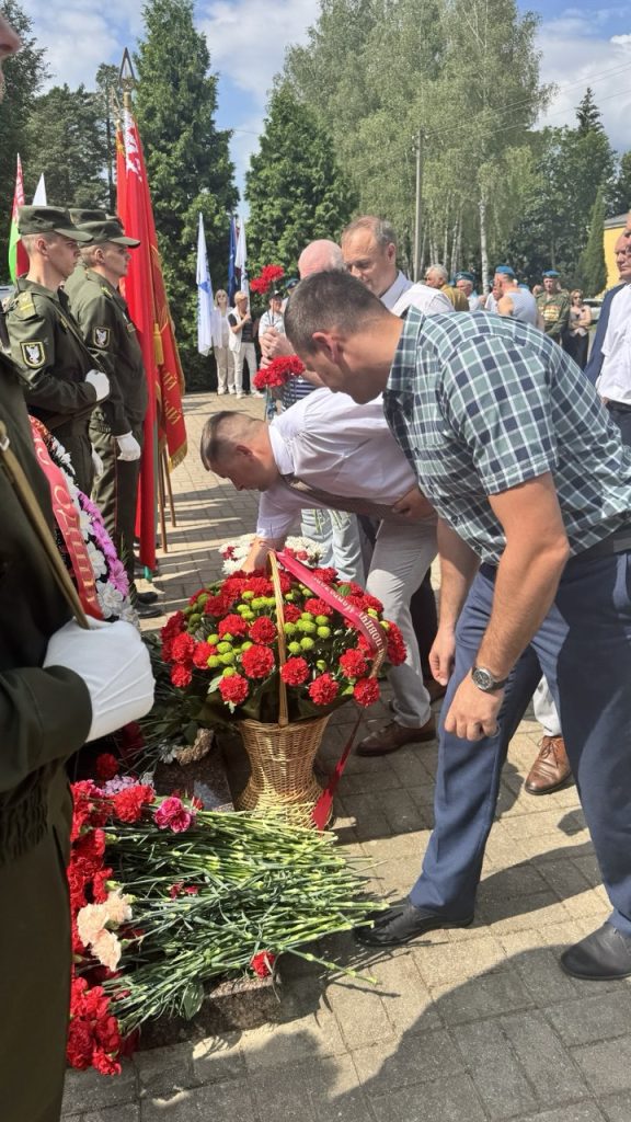 Директор РУП СГ-ТРАНС Андрей Лосик и заместитель директора-главный инженер РУП СГ-ТРАНС Игорь Ананка возложили цветы к бюсту-памятнику В.Ф.Маргелова, выразив тем самым глубокое уважение и признательность героям-десантникам, отдавшим свои жизни за мирное небо над головой.