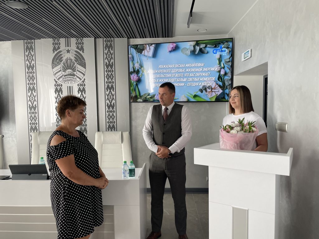 Присоединилась к поздравлениям и председатель профсоюза РУП СГ-ТРАНС Ирина Стриголович, выразив признательность Оксане Михайловне за ответственный подход к делу, трудолюбие и активное участие в жизни коллектива 💐