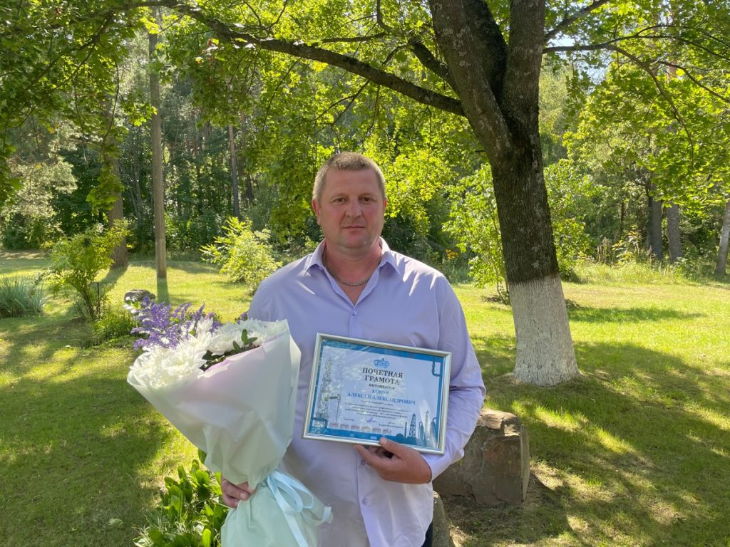 В торжественной обстановке директор вручил почетную грамоту ГПО «Белтопгаз» Валерию Киринскому, оператору товарному Мозырского ТТЦ за добросовестный труд и личный вклад в развитие отрасли и благодарственные письма РУП СГ-ТРАНС операторам товарным Речицкого ТТЦ – Николаю Гаврону и Алексею Коцур за достижение высоких показателей в труде и профессиональное мастерство 🤝