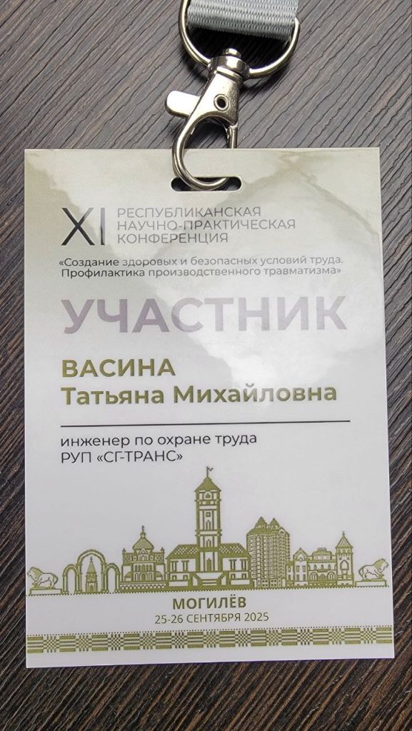26 сентября 2025 г. инженер по охране труда РУП СГ-ТРАНС Татьяна Васина принимает участие в XI Республиканской научно-практической конференции «Создание здоровых и безопасных условий труда. Профилактика производственного травматизма» в Могилеве🏙