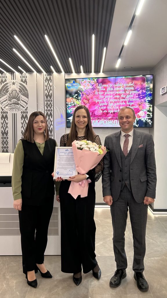 ✅Коллектив РУП СГ-ТРАНС выразил Юлии Вячеславовне искреннюю благодарность за преданность профессии и пожелал ей крепкого здоровья, благополучия, новых профессиональных успехов и дальнейших достижений в ее важной работе. Ее ценят как профессионала высочайшего уровня и как прекрасного человека, что делает ее вклад в успех предприятия поистине неоценимым.