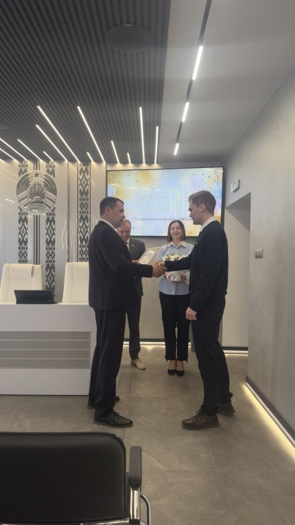 ✔️Особым моментом стало вручение Алексею членского билета ОО «БРСМ». Заместитель директора-главный инженер Игорь Ананка торжественно передал Алексею этот символ принадлежности к активной молодежной организации, подчеркнув важность его участия в общественной жизни и развития как молодого профессионала.