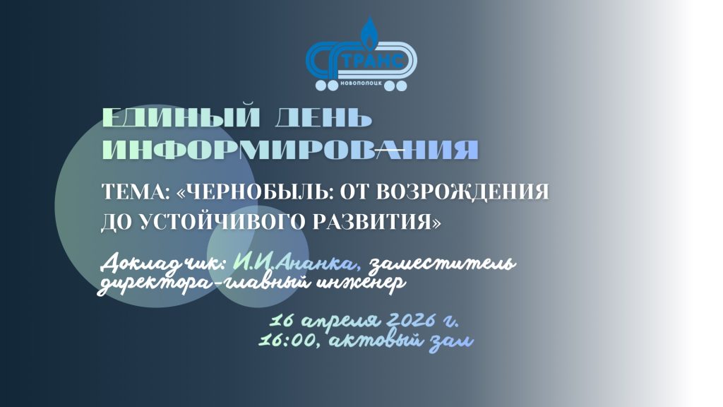 📆16 апреля 2026 г. в актовом зале РУП СГ-ТРАНС состоится Единый день информирования по теме: «Чернобыль: от возрождения до устойчивого развития»